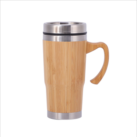 Вакуумная Изолированная бамбуковая 18/8 кружка из нержавеющей стали Двойная Стенка бамбуковая кофейная кружка с крышкой и ручкой
